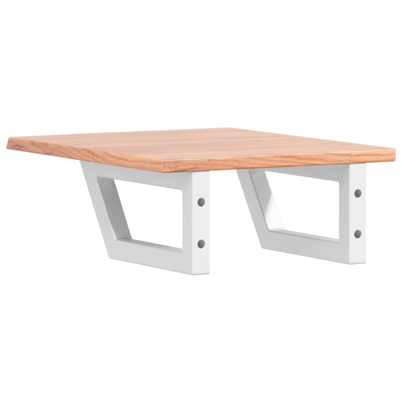 Das Regal lässt sich sicher an der Wand befestigen und bietet eine elegante und platzsparende Lösung für dein Badezimmer. Robust und langlebig: Diese Waschtisch-Platte hat Stahlhalterungen und eine Eichenholz-Platte, wodurch sie robust, stabil und langlebig ist.Platzsparend: Das Schweberegal bietet reichlich Platz für Cremes und Kleinigkeiten. Dank der Trapezform der Halterungen lassen sich auch Handtücher oder andere Sachen platzsparend darauf aufhängen.Einfache Verwendung: Die Holzplatte ist nicht vorgebohrt, sodass dein Waschbecken je nach Bedarf links, rechts oder in der Mitte angebracht werden kann. Dank der vorgebohrten Löcher in der Halterung lässt sich die Ablage am Waschtisch oder an der Wand mühelos befestigen.Vielseitig einsetzbar: Dank ihres modernen Designs schafft die Ablage zusätzlichen Stauraum und fügt sich harmonisch in die unterschiedlichsten Einrichtungen ein. Gut zu wissen:Die Schrauben sind nicht im Lieferumfang enthalten. Du kannst die Schrauben anhand von den folgenden Informationen separat erwerben.Wandbefestigung: 2 x M8-Dehnschraube pro HalterungHolzplatte: 2 x M5x18-Schraube (T=2) oder 2 x M5x20-Schraube (T=2,5/4 cm) pro HalterungAls Naturprodukt kann Holz Aststellen und Unebenheiten aufweisen, die wir mit schwarzer Füllung ausfüllen, um ein glattes Aussehen zu gewährleisten.
