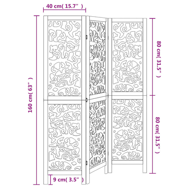 Verleihe deinem Wohnraum eine auffällige dekorative Note mit diesem bezaubernden Raumteiler. Langlebig und leicht zu reinigen: Der Sichtschutz ist aus Paulownia-Massivholz und Holzwerkstoff gefertigt, wodurch er pflegeleicht und strapazierfähig ist.Robuster Rahmen: Der Rahmen aus massivem Paulownia-Holz sorgt für Robustheit und Stabilität. Paulownia-Massivholz ist ein wunderschönes Naturmaterial. Paulowniaholz ist widerstandsfähig gegen Schädlingsbefall und Verrottung.Flexibel und einfach faltbar: Die Paravent-Teile sind jeweils durch 3 Metallscharniere miteinander verbunden. Die oberen und unteren Paneele dieser spanischen Wand sind durch verborgene 2-in-1-Scharniere verbunden. Der Raumtrenner kann also leicht bis zu einem gewissen Grad zusammengeklappt werden; dadurch spart er bei Nichtgebrauch Platz.Vielseitig einsetzbar: Die Trennwand eignet sich hervorragend zur Schaffung von Privatsphäre im Schlafzimmer, Wohnzimmer, Büro und anderen Räumen. Du kannst das Paravent auch vor ein Fenster stellen, um intensives Sonnenlicht abzuschirmen.Attraktiver Look: Mit seinem filigranen Muster verleiht diese faltbare Trennwand jedem Raum mehr Charakter. Achtung:Nur für den Innenbereich!