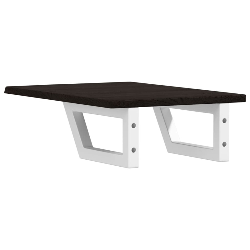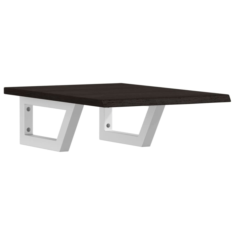 Das Regal lässt sich sicher an der Wand befestigen und bietet eine elegante und platzsparende Lösung für dein Badezimmer. Robust und langlebig: Diese Waschtisch-Platte hat Stahlhalterungen und eine Eichenholz-Platte, wodurch sie robust, stabil und langlebig ist.Platzsparend: Das Schweberegal bietet reichlich Platz für Cremes und Kleinigkeiten. Dank der Trapezform der Halterungen lassen sich auch Handtücher oder andere Sachen platzsparend darauf aufhängen.Einfache Verwendung: Die Holzplatte ist nicht vorgebohrt, sodass dein Waschbecken je nach Bedarf links, rechts oder in der Mitte angebracht werden kann. Dank der vorgebohrten Löcher in der Halterung lässt sich die Ablage am Waschtisch oder an der Wand mühelos befestigen.Vielseitig einsetzbar: Dank ihres modernen Designs schafft die Ablage zusätzlichen Stauraum und fügt sich harmonisch in die unterschiedlichsten Einrichtungen ein. Gut zu wissen:Die Schrauben sind nicht im Lieferumfang enthalten. Du kannst die Schrauben anhand von den folgenden Informationen separat erwerben.Wandbefestigung: 2 x M8-Dehnschraube pro HalterungHolzplatte: 2 x M5x18-Schraube (T=2) oder 2 x M5x20-Schraube (T=2,5/4 cm) pro HalterungAls Naturprodukt kann Holz Aststellen und Unebenheiten aufweisen, die wir mit schwarzer Füllung ausfüllen, um ein glattes Aussehen zu gewährleisten.