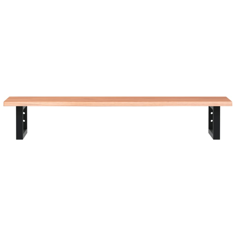 Das Regal lässt sich sicher an der Wand befestigen und bietet eine elegante und platzsparende Lösung für dein Badezimmer. Robust und langlebig: Diese Waschtisch-Platte hat Stahlhalterungen und eine Eichenholz-Platte, wodurch sie robust, stabil und langlebig ist.Platzsparend: Das Schweberegal bietet reichlich Platz für Cremes und verschiedene Kleinigkeiten. Dank der rechteckigen Form der Halterungen kannst du auch Handtücher oder andere Sachen darauf platzsparend aufhängen.Einfache Verwendung: Die Holzplatte ist nicht vorgebohrt, sodass dein Waschbecken je nach Bedarf links, rechts oder in der Mitte angebracht werden kann. Dank der vorgebohrten Löcher in der Halterung lässt sich die Ablage am Waschtisch oder an der Wand mühelos befestigen.Vielseitig einsetzbar: Dank ihres modernen Designs schafft die Ablage zusätzlichen Stauraum und fügt sich harmonisch in die unterschiedlichsten Einrichtungen ein. Gut zu wissen:Die Schrauben sind nicht im Lieferumfang enthalten. Du kannst die Schrauben anhand von den folgenden Informationen separat erwerben.Wandbefestigung: 2 x M8-Dehnschraube pro HalterungHolzplatte: 2 x M5x18-Schraube (T=2) oder 2 x M5x20-Schraube (T=2,5/4 cm) pro HalterungAls Naturprodukt kann Holz Aststellen und Unebenheiten aufweisen, die wir mit schwarzer Füllung ausfüllen, um ein glattes Aussehen zu gewährleisten.