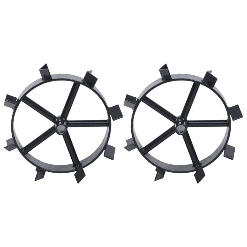 Diese zwei hochfesten Metallräder sind mit unserer 6,5-PS-Benzin-Gartenfräse kompatibel. Die Räder mit Greifzähnen ersetzen die üblichen Räder der Gartenfräse, um die Gartenfräse bei Arbeiten in einer sehr nassen Umgebung zu stabilisieren und das Verrutschen zu vermeiden.