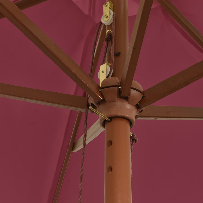 Dieser Sonnenschirm eignet sich perfekt, um Schatten zu spenden und dich vor den schädlichen UV-Strahlen der Sonne zu schützen. Langlebiges Material: Aus UV-beständigem und lichtechtem Polyester gefertigt, bietet der Sonnenschirm optimalen Schutz vor der Sonne und lässt sich einfach reinigen.Stabiles Gestell: Dank des robusten Mastes aus Hartholz und der langlebigen Rippen ist der Gartenschirm sehr stabil und langlebig.Belüftung: Das zusätzliche Stück Stoff an der Oberseite des Schirms lässt Wind und Wärme durch, was den Sonnenschirm zu einer wunderbaren Wahl für deinen Außenbereich macht.Einfache Bedienung: Der Sonnenschirm lässt sich dank des Seilzugsystems leicht öffnen und schließen. Hinweis:Dieses Produkt ist nicht zu 100 % wasserdicht. Wir empfehlen daher, es mit einem Imprägnierspray zu behandeln, um eine bessere Wasserfestigkeit zu gewährleisten.