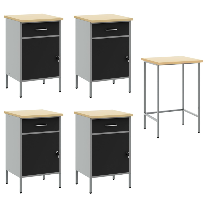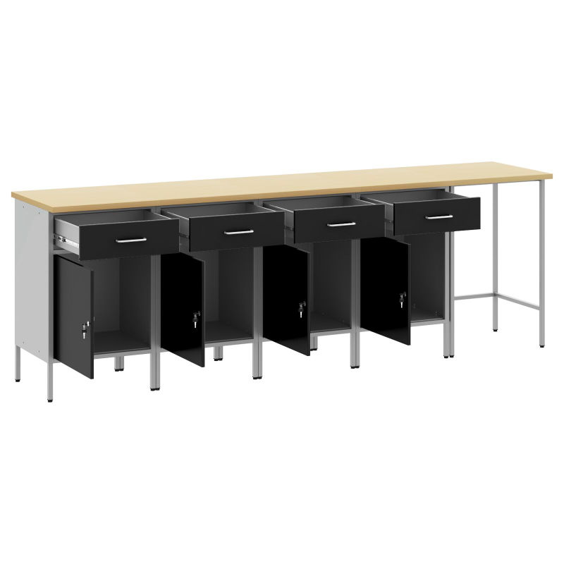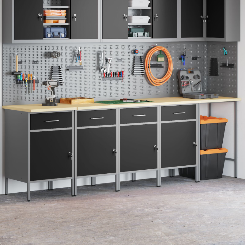 Der Ecktisch mit Werkstattschrank ist genau das, was du brauchst, um deinen Arbeitsplatz ordentlich und effizient zu halten. Perfekt fr Garagen und Werksttten, verbindet er einen stabilen Look mit einem coolen Touch und bietet Platz fr jede Menge Werkzeuge und Zubehr. Egal, ob du eine spezielle Werkzeugaufbewahrung oder einen vielseitigen Arbeitsplatz fr Projekte suchst, das ist genau das Richtige fr dich. Mit 255 cm Breite, 85 cm Hhe und 55 cm Tiefe ist er gerumig, aber nicht zu klobig. Verstellbare Fe und sichere Stauraummglichkeiten machen ihn praktisch und stylish, was ihn zu einer Top-Wahl fr jeden modernen Arbeitsplatz macht.