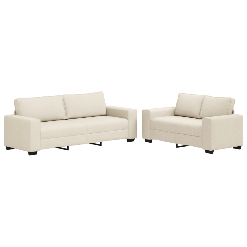 Dieses moderne Sofaset, bestehend aus einem Zweisitzer und einem Dreisitzer Sofa, bringt Stil und Funktionalität in dein Wohnzimmer. Der glatte Stoff und die dezente cremefarbene Farbe passen zu verschiedenen Wohnstilen und bieten viel Platz für Familie und Freunde. Ergonomisches Design: Die Sofas sind sorgfältig gestaltet, um besten Komfort und Unterstützung zu bieten, sodass dein Sitz-Erlebnis auch über längere Zeit angenehm bleibt. Abnehmbare Bezüge: Mit cleveren Reißverschlüssen sind die Bezüge leicht abnehmbar, sodass du dir keine Sorgen um die Reinigung machen musst. Fleckenbeständiges Material: Aus hochwertigem Polyester – Flecken perlen einfach wieder ab, perfekt für Familien mit Kindern oder Tieren. Geräumige Sitzfläche: Platz für bis zu fünf – ideal für Treffen, Filmabende oder familiäre Zusammenkünfte. Stylische Ästhetik: Der moderne Look mit mattschwarzem Holzrahmen und schicken Armlehnen gibt deiner Einrichtung das gewisse Etwas.