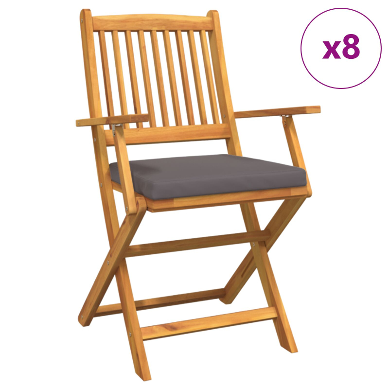 Dieses faltbare Outdoor-Set aus Teakholz ist genau das Richtige fr dein Sitzen im Freien. Perfekt fr Terrassen, Balkone oder Grten, sind diese Sthle stabil und stilvoll. Mit den Kissen hast dus bequem, whrend du isst oder quatschst. Hergestellt aus massivem Teakholz, sind die Sthle langlebig und halten dem Wetter stand. Das faltbare Design macht es leicht, sie zu verstauen, wenn du sie nicht brauchst. Egal, ob du Freunde einldst oder einfach einen ruhigen Kaffee geniet, diese Sthle bringen einen Hauch von Eleganz in deinen Auenbereich.