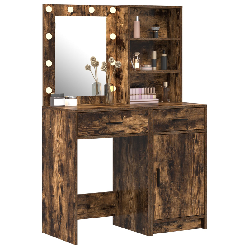 Das moderne Set aus geruchertem Eichenholz ist ein echter Game-Changer frs Schlafzimmer. Es bietet viel Platz und einen eleganten Spiegel perfekt fr deinen persnlichen Pflegebereich. Mit einer Lnge von 78,5 cm ist es ideal fr all deine Beauty-Utensilien. Egal, ob du ein Typ oder ein Mdchen bist, dieses stylische Set passt perfekt fr Erwachsene, die ihren Raum aufpeppen wollen. Der klare Eichenbau harmoniert mit jedem Dekor, und der integrierte Spiegel sorgt dafr, dass du von allen Seiten gut aussiehst. Ob fr einen entspannten Tag oder eine besondere Nacht, dieses Frisiertisch-Set hat alles, was du brauchst.
