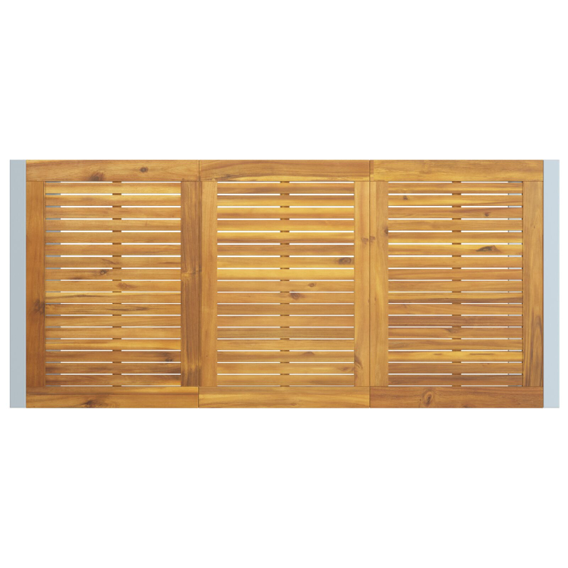 Der rechteckige graue Terrassentisch ist ein tolles Möbelstück, das deine Esszeit im Freien aufs nächste Level hebt. Mit seinem modernen Design passt er perfekt in jede Outdoor-Umgebung und bietet dir viel Platz, um Freunde und Familie zu bewirten. Langlebigkeit: Aus Metall und Holz, hält er allen Witterungsbedingungen stand, damit du ihn sorglos im Freien nutzen kannst. Leichtes Design: Die Materialien machen ihn easy zu bewegen, perfekt, um ihn zum Beispiel im Winter wegzuräumen. Modernes Aussehen: Mit klaren Linien und einem Hauch von Eleganz bringt dieser Tisch Stil auf deinen Balkon, in den Garten oder auf die Terrasse. Die matte graue Oberfläche fügt sich hübsch in die Natur ein und bleibt schick. Viel Platz: Mit 180 cm x 90 cm und einer Höhe von 75 cm bietet dieser Tisch Platz für sechs Personen - ideal zum Essen oder für gesellige Runden. Pflegeleicht: Die glatte Oberfläche ist kinderleicht zu reinigen, damit du deine Mahlzeiten ohne Stress genießen kannst. Decke ihn einfach ab, wenn du ihn nicht mehr brauchst, damit er länger hält.