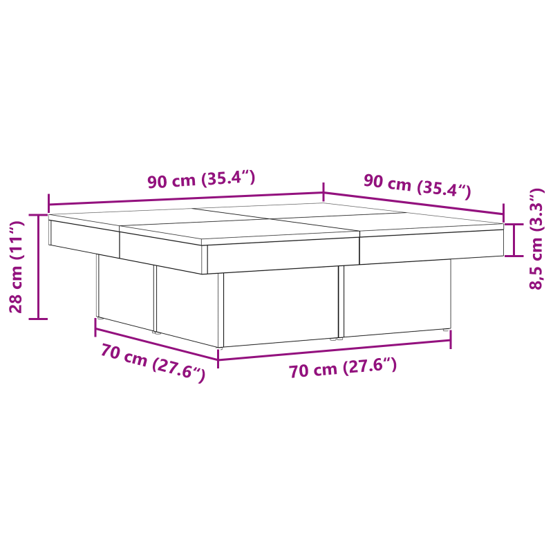Dieser moderne schwarze Eichen-Couchtisch verbindet Eleganz mit Funktionalität und ist der perfekte Mittelpunkt für jeden Raum. Seine klaren Linien und matte Oberfläche passen zu traditionellen und modernen Einrichtungsstilen und bieten gleichzeitig eine praktische Nutzung für den Alltag. Dieser Tisch hat eine glatte Oberfläche, perfekt für Drinks, Snacks und Deko, mit einer robusten Konstruktion, die dem täglichen Gebrauch standhält und dabei schick aussieht. Die massive Eiche sorgt für Haltbarkeit und einen eleganten Touch, der gut zu deiner Einrichtung passt. Die matte Oberfläche reduziert Blendung für einen modernen Look. Mit einer quadratischen Größe von 90 cm bietet er viel Platz für Treffen, egal ob du Gäste empfängst oder einen ruhigen Abend magst. Er ist dazu gemacht, dein Wohnerlebnis zu verbessern. Die moderne quadratische Form sieht nicht nur gut aus; sie ist auch praktisch für kleinere Räume und bietet eine solide Arbeitsfläche. Perfekt für verschiedene Wohnzimmerlayouts. Dieser Tisch ist für den Innengebrauch gedacht und ist eine tolle Wahl, um Stil und Funktionalität in deinen Wohnbereich zu bringen.