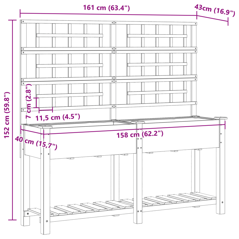 Dieser große rechteckige Pflanzkasten bringt tolles Grün in dein Zuhause oder nach draußen. Er hebt jede Pflanze hervor und sorgt für einen stylischen Look. Mit einer Höhe von 152,5 cm und einer Breite von 161 cm vereint er Stil und Funktion und passt perfekt in moderne Einrichtungen, während er deinem Raum einen Hauch von natürlichem Holzcharme verleiht. Hochwertiges Material: Der Pflanzkasten ist aus massivem Kiefernholz gefertigt, das für Stärke und Schönheit bekannt ist. Dadurch hält er lange und bringt einen natürlichen Charme in dein Zuhause. Vielseitige Nutzung: Er kann drinnen und draußen verwendet werden, sodass du überall tolle Pflanzenarrangements schaffen kannst – auf deinem Balkon, deiner Terrasse oder in einer kuscheligen Ecke deines Wohnzimmers. Modernes Design: Sein schlankes und einfaches Aussehen passt zu vielen Wohnstilen und macht ihn zum idealen Accessoire für diejenigen, die einen sauberen, stylischen Look möchten. Einfache Pflege: Er ist super einfach zu reinigen; ein Wisch mit warmem Wasser genügt, um deinem Pflanzkasten ein tolles Aussehen zu verleihen, ohne das Risiko, das Holz mit scharfen Chemikalien zu beschädigen. Großzügige Größenoptionen: In geräumigen Maßen von 161 x 46 x 152,5 cm verfügbar, bietet dieser Pflanzkasten genügend Platz für zahlreiche Pflanzen und sorgt für eine ansprechende Präsentation, die deinen Raum auflockert.