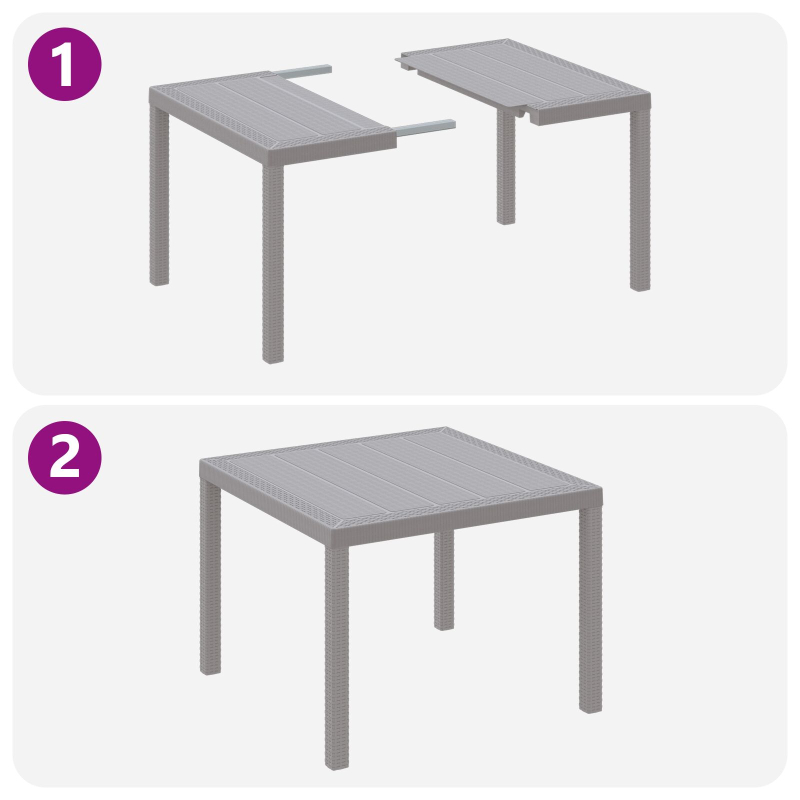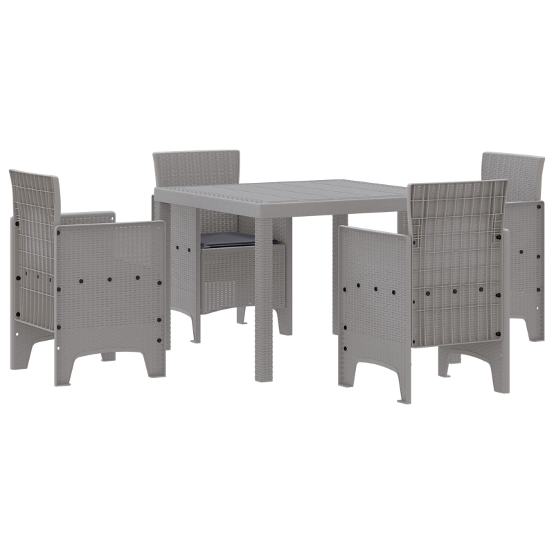 Dieses coole Garten-Essset hat einen quadratischen Tisch und vier Sthle perfekt fr Mahlzeiten im Freien. Aus hochwertigem Poly-Rattan gemacht, hat es einen schnen hellgrauen Farbton, der gut zu modernen Auenbereichen passt. Es ist UV-bestndig und wasserfest, sodass jedes Teil lange hlt und du drauen bei jedem Wetter Spa haben kannst. Egal, ob du grillst oder auf dem Balkon chillst, dieses Set ist der perfekte Ort fr dein Outdoor-Entertainment. Ideal fr vier Personen, es ist der perfekte Platz zum Essen, Relaxen oder einfach nur zum Abhngen. Auerdem ist es komplett aus synthetischen Materialien gemacht, was die Reinigung kinderleicht macht einfach kurz mit einem feuchten Tuch abwischen. Mach deinen Auenbereich mit diesem stylischen und praktischen Essset auf.