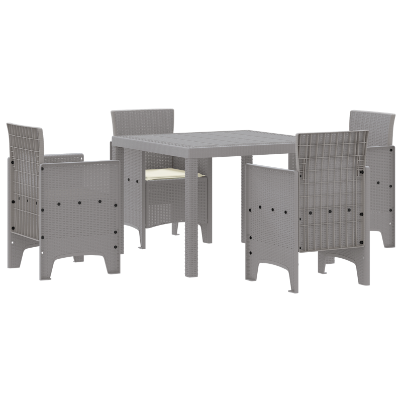 Dieses schicke Garten-Essset ist genau das Richtige für deinen Außenbereich. Es kombiniert modernes Design mit Praktikabilität. Es besteht aus stabilem Kunststoff und hat einen rechteckigen Tisch mit vier gepolsterten Stühlen – ideal für Essen im Freien mit Freunden oder der Familie. Dieses Set ist stabil gebaut, damit du viele tolle Mahlzeiten im Freien über Jahre genießen kannst. Stark und wetterfest, es ist für alle Wetterbedingungen geeignet. Die UV-beständigen Materialien sorgen dafür, dass die schicke hellgraue Farbe in der Sonne nicht verblasst und deine Terrasse frisch aussieht. Dieses Essset ist wasserdicht, sodass du ohne zusätzlichen Stress im Freien genießen kannst, bei jedem Wetter. Viel Spaß bei deinen Outdoor-Partys, egal wie das Wetter ist! Das moderne Design fügt sich perfekt nach draußen ein und die gepolsterten Stühle sorgen für etwas Komfort. Ideal für vier Gäste. Mit Platz für bis zu 4 Personen ist dieses Essset perfekt für Familienessen oder entspannte Zusammenkünfte mit Freunden, das Stil und Funktionalität vereint.