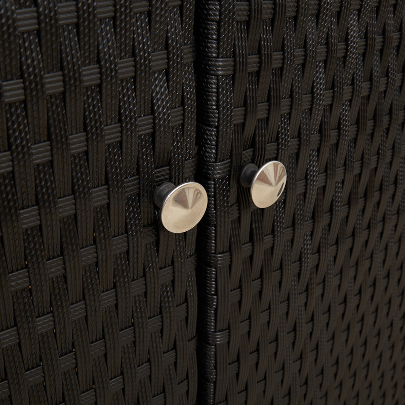 Dieser Aufbewahrungsschrank ist eine clevere und praktische Lösung für deinen Außenbereich, kombiniert Funktionalität mit einem modernen Look. Hergestellt aus wetterfestem Rattan in elegantem Schwarz, sieht er in jedem Garten oder auf jeder Terrasse super aus und hält deine Sachen ordentlich. Großzügige Abmessungen: Mit 100 x 36 x 102 cm nutzt dieser Schrank den vertikalen Raum ideal aus und kann eine Vielzahl von Gegenständen unterbringen, von Gartenwerkzeugen bis hin zu Außenkissen. Strukturierte Oberfläche: Die strukturierte Rattan-Oberfläche verleiht Tiefe und Stil für den Schrank, sodass er heraussticht und wetterbeständig ist. Mehrere Regale: Zwei eingebaute Regale bieten extra Stauraum, ideal um Vorräte oder Deko in deinem Außenbereich zu sortieren. Einfacher Zugriff: Der Magnetverschluss sorgt für eine sichere Passform und lässt dich schnell auf deine Sachen zugreifen - perfekt für Dinge, die du oft brauchst. Moderner Look: Der Schrank fügt sich super in moderne Außenumgebungen ein und begeistert mit seinem eleganten Design und praktischen Features, die ihn zum Muss für deinen Garten oder deine Garage machen.