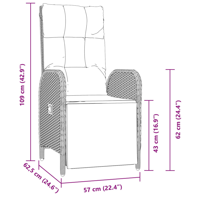 Dieses 7-teilige Garten Esszimmer Set ist die perfekte Mischung aus Stil und Komfort, mit verstellbaren Liegesthlen und kuscheligen Kissen. Es gibt jedem Auenbereich einen modernen Touch. Robust, aus Poly-Rattan und pulverbeschichtetem Stahl, garantiert es eine lange Lebensdauer, whrend die verstellbaren Funktionen jedem ermglichen, den idealen Platz zu finden. Platz fr bis zu sechs Personen macht dieses Set zum perfekten Begleiter fr ein schnes Essen im Freien.