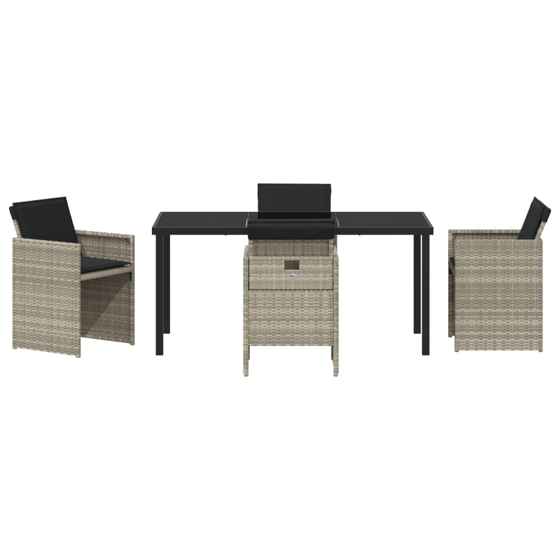 Das Garten Essset ist ideal fr gemtliche Stunden im Freien und bietet Platz fr bis zu vier Leute. Das helle graue Poly-Rattan-Design kommt mit bequemen anthrazitfarbenen Kissen und ist perfekt fr Gartenpartys oder entspanntes Frhstck auf der Terrasse. Jeder Stuhl ist sorgfltig verarbeitet und bringt dich bei lebhaften Zusammenknften oder entspannten Momenten im Freien zum Wohlfhlen. Wegen der robusten Materialien hlt das Set Wind und Wetter stand und ist super fr Essen im Freien. Ob beim Grillen oder einem chilligen Abend unter dem Sternenhimmel, das Set gibt deinem Auenbereich einen tollen Look.