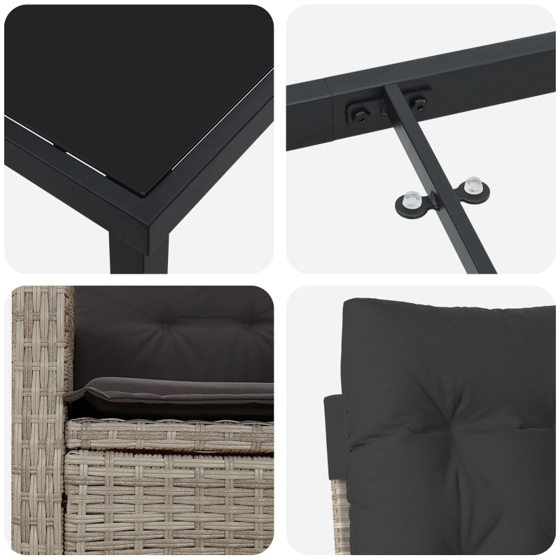 Die verstellbaren Gartensthle bieten dir Komfort und Langlebigkeit die perfekte Wahl fr deine Gartenmbel. Mit einem stilvollen hellgrauen Finish bringen die Sthle eine einladende Atmosphre auf deine Terrasse, in den Garten oder auf den Balkon. Du kannst die Rckenlehne ganz einfach anpassen, um optimal zu entspannen. Die dicken Kissen haben abnehmbare Bezge, die die Reinigung zum Kinderspiel machen. Der robuste Stahlrahmen trgt bis zu 110 kg und sorgt dafr, dass die Sthle ber Jahre hinweg zuverlssig sind. Genie die Natur mit diesem tollen Stuhlset.