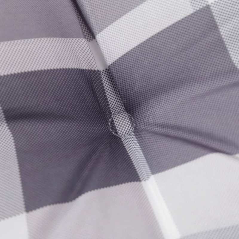 • Mit grauem Karomuster