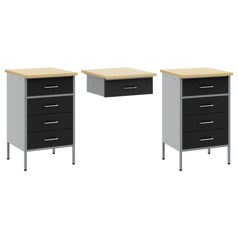 Das Industriestil-Werk Cabinet ist eine tolle Ergänzung für jedes Büro oder jede Werkstatt. Es ist gut verarbeitet mit vier Schubladen für viel Stauraum. Aus stabilem Stahl und hochwertigem Holzwerkstoff gefertigt, hat jedes Teil eine Holzoberfläche, die gut zu verschiedenen Stilen passt und für den täglichen Gebrauch geeignet ist. Es ist praktisch und stylisch – perfekt für DIY-Fans und Profis. Robuste Bauweise: Der 0,4 und 0,5 mm dicke Stahl macht den Schrank stark und langlebig, während die 2,5 cm dicke Tischplatte dir einen soliden Arbeitsplatz bietet. Diese Kombination aus Haltbarkeit und Stil sorgt dafür, dass der Schrank intensiven Gebrauch aushält, ohne seine gute Optik zu verlieren. Großer Stauraum: Mit vier Schubladen, die jeweils bis zu 10 kg halten können, bietet dieser Schrank Platz für allerlei Werkzeuge und Materialien und hält deinen Arbeitsplatz ordentlich. Die glatten, kugelgelagerten Schienen machen den Zugriff auf alles einfach, sodass du Ordnung halten kannst. Höhenverstellbar: Die verstellbaren Füße des Schranks sorgen dafür, dass er auf unebenen Böden stabil bleibt, sodass er in verschiedenen Werkstattaufstellungen nützlich ist. Dieses Feature stellt sicher, dass du ihn richtig aufstellen kannst, egal wie der Boden beschaffen ist. Stylisches Design: Das matte Finish und die Holzoptik geben dem Schrank ein modernes industrielles Gefühl, sodass er ein echter Blickfang für jede Werkstatt oder jeden Wohnraum ist. Es ist sowohl praktisch als auch schick und wertet das Gesamtbild deines Raumes auf. Einfache Montage: Hergestellt mit Benutzerfreundlichkeit im Kopf, kommt der Schrank mit klaren Montageanleitungen und benötigt nur zwei Personen und einen Schraubendreher. Du kannst ihn im Handumdrehen aufbauen und sofort nutzen.