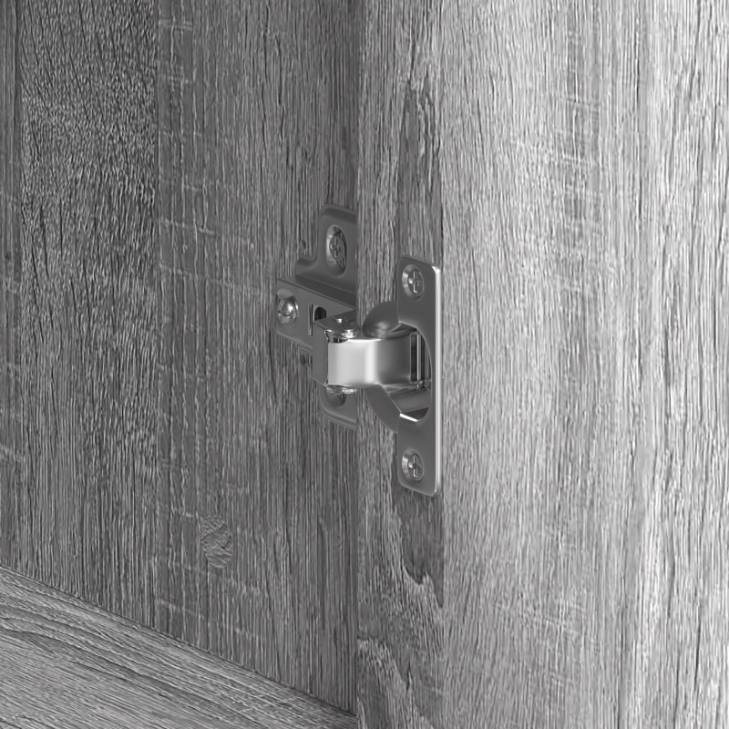 Dieses zeitgenössische Sideboard ist 120 cm lang, 40,5 cm breit und 75 cm hoch. Es vereint Praktikabilität mit modernem Design und peppt dein Esszimmer auf. Gefertigt aus robustem Holzwerkstoff, hat es ein schickes grau sonoma Finish, das in jedes Dekor passt. Es ist eine tolle Ergänzung für legere sowie schicke Essbereiche. Reichlich Stauraum: Mit mehreren Fächern, zwei Türen und drei geräumigen Schubladen bietet dieses Sideboard jede Menge Platz für Geschirr und andere Essensutensilien. Das Layout sorgt dafür, dass alles schnell griffbereit ist. Stylisches Finish: Das matte Finish reduziert Reflexionen und sieht klasse in deinem Essbereich aus. Die graue Sonoma Farbe passt zu zeitgenössischen Themen und harmoniert mit verschiedenen Möbelstücken. Robuste Konstruktion: Hergestellt aus hochwertigem Holzwerkstoff, sieht dieses Stück nicht nur toll aus, sondern ist auch stabil genug für den Alltagsgebrauch, garantiert dir lange Freude an diesem Möbelstück. Es ist für ein Gewicht von bis zu 60 kg ausgelegt. Vielseitiges Design: Ideal als Buffet während Zusammenkünften, dient dieses Sideboard auch als stilvolle Aufbewahrungslösung für dein Esszimmer. Seine rechteckige Form und modernes Design passen gut in verschiedene Innenräume und harmonieren sowohl mit modernen als auch traditionellen Look. Einfacher Aufbau: Der Zusammenbau des Sideboards ist leicht, du brauchst nur zwei Personen und grundlegende Werkzeuge wie einen Schraubendreher. Das durchdachte Design ermöglicht dir die einfache Montage ohne professionelle Hilfe.