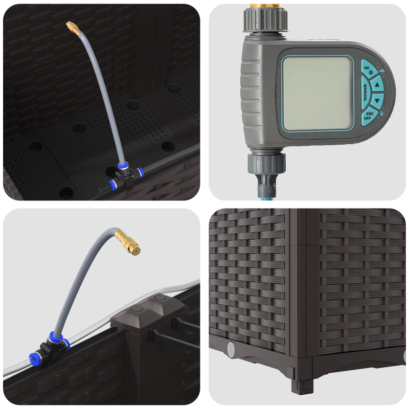 Dieser rechteckige Selbstbewässerungspflanzer bringt nicht nur Farbe in deinen grünen Bereich, sondern ist auch ein cooler Weg, Pflanzen zu ziehen. Sein praktisches Design passt perfekt auf Balkonen, in Gärten oder auf Terrassen und zeigt deine Pflanzen, während sie gesund bleiben. Hydrationsmanagement: Das Selbstbewässerungssystem reduziert die Notwendigkeit für häufiges Gießen, sodass du gesunde Pflanzen ohne Stress genießen kannst. Wetterbeständig: Aus UV-beständigem Kunststoff gefertigt, hält dieser Pflanzer den Bedingungen im Freien stand und kommt nicht zu Schaden. Texturierte Anziehungskraft: Die strukturierte Oberfläche sorgt für einen angenehmen Griff und passt perfekt zum modernen Design und macht ihn überall zu einem Blickfang. Nachhaltiges Gärtnern: Der Pflanzer macht das Pflanzen einfach und unterstützt umweltfreundliches Gärtnern und fördert die Verbindung zur Natur. Geräumige Abmessungen: Mit 80 x 40 x 37,5 cm bietet er Platz für mehrere Pflanzen und ist vielseitig für verschiedene Größen geeignet.
