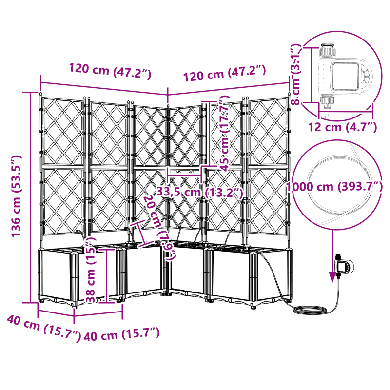 Dieser moderne graue Pflanzer mit verstellbarem Spalier verbindet Stil und Funktionalität, perfekt für Innen- und Außengärten. Hergestellt aus UV-beständigem Kunststoff verbessert er das Aussehen deines Balkons oder Gartens und bietet gleichzeitig viel Platz für deine Pflanzen. Erweiterbare Funktionalität: Der Pflanzer kann in seiner Größe angepasst werden, indem zusätzliche Abschnitte hinzugefügt werden, was ihn flexibel für verschiedene Pflanzen und Arrangements macht. Stylische Ästhetik: Mit seinem modernen Rattan-Look fügt er sich toll in jeden Raum ein. Das matte Finish ergänzt jeden Einrichtungsstil und setzt einen tollen Akzent. Robuste Konstruktion: Aus hochwertigen, UV-beständigen Materialien gefertigt, hält dieser Pflanzer allen Wetterbedingungen stand, ohne zu verblassen, sodass er viele Jahre gut aussieht. Großzügige Kapazität: Mit einer Kapazität von 35 Litern bietet er genug Platz für deine Pflanzen, um zu wachsen und eine lebendige Gartenlandschaft zu schaffen. Ideal für verschiedene Bereiche: Perfekt für Balkone, Terrassen oder Gärten, wertet dieser Pflanzer jeden Außenbereich auf und ist für Gartenliebhaber ideal.