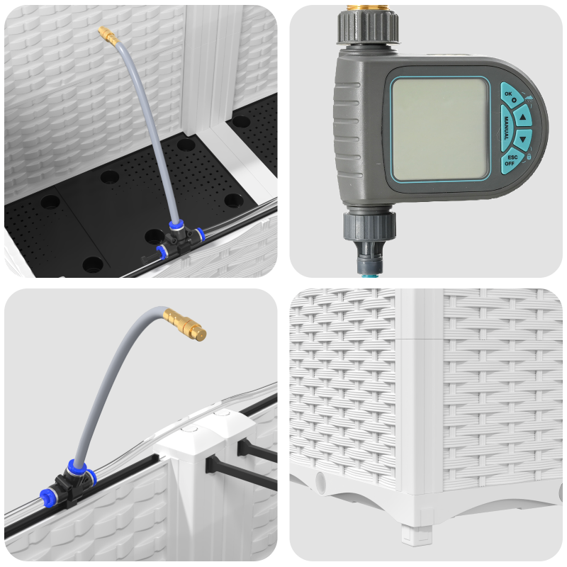 Dieser stylische weiße rechteckige Pflanzer ist eine coole Möglichkeit, deine Pflanzen zu zeigen und bringt mit seinem Selbstbewässerungssystem einen modernen Look. Mit den Abmessungen von 80 x 40 x 37,5 cm passt er perfekt in Innen- und Außenbereiche und sorgt auf deinem Balkon oder im Garten für eine tolle Atmosphäre. Selbstbewässerungssystem: Dieses coole Feature lässt Pflanzen länger gedeihen, mit minimalem Aufwand, und sorgt dafür, dass sie genau die richtige Menge Feuchtigkeit bekommen. Zeitgenössisches Design: In elegantem Weiß gehalten, bringt der Pflanzer einen modernen Touch und passt perfekt in stylische Wohnungen oder Gärten im Freien. Haltbare Oberfläche: Die pulverbeschichtete Behandlung macht ihn robust und schützt vor schlechtem Wetter, sodass er über Jahre hinweg gut aussieht. Vielseitige Verwendung: Ideal für Innenräume wie Wohnzimmer oder Außenbereiche wie Terrassen, ein Muss, wo auch immer du Pflanzen hinstellen möchtest. Großzügige Abmessungen: Mit 80 x 40 x 37,5 cm bietet er genug Platz für verschiedene Pflanzentypen und ergänzt deinen Raum perfekt.