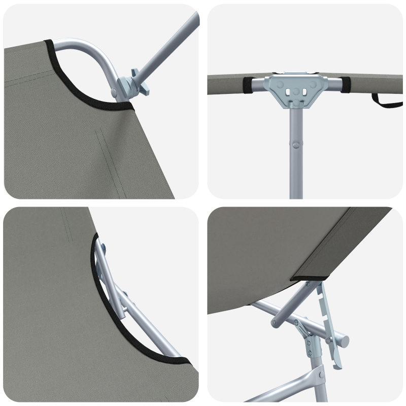 Dieses Klappbare Sonnenliegen-Set hat ein stylisches modernes Design und ist genau das, was du für entspannte Tage im Freien brauchst. Genieße sonnige Tage oder Sommerabende mit Stil. Die schicke graue Farbe und die praktischen Funktionen machen es zur perfekten Wahl für jeden Balkon oder Außenbereich, der Stil und Funktionalität verbinden will. Jede Liege hat eine manuelle verstellbare Rücklehne, die auf deinen Komfort eingestellt werden kann – perfekt zum Lesen, Sonnenbaden oder einfach Chillen. Hergestellt aus UV-beständigem Textilene-Gewebe, sind diese Liegen für alle Wetterbedingungen geeignet und halten den ganzen Sommer über. Das faltbare Design macht sie super einfach zu lagern und zu transportieren – ideal für den Heimgebrauch oder für Strandbesuche und Picknicks. Mit einem stabilen polierten Aluminiumrahmen bieten diese Liegen ausgezeichneten Halt und Stabilität für ein sicheres Entspannungserlebnis. Dank der glatten Textur und des atmungsaktiven Materials kannst du bequem in diesen Liegen entspannen und jedes Mal Freude am Draußensein haben.