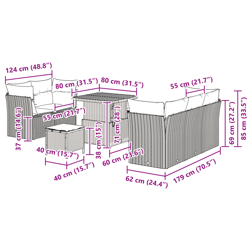• Seat Depth: 60 cm