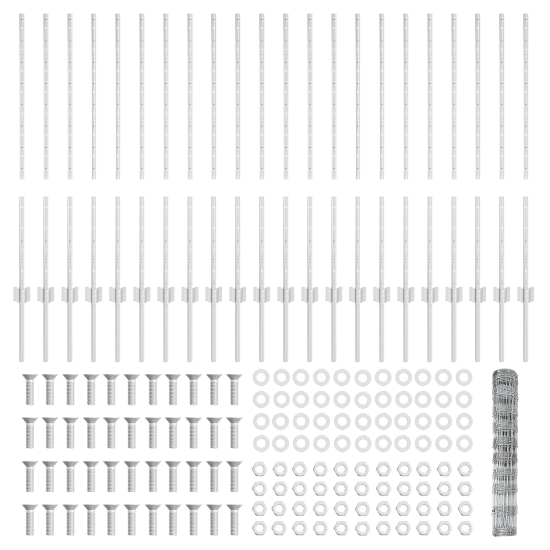 Das graue Set mit verzinktem Stahlfeldzaun ist ideal, um deinen Außenbereich aufzuwerten, egal ob du Nutztiere sichern oder die Grenze deines Grundstücks markieren willst. Seine robuste Bauweise bietet Funktionalität und Stil und macht es zur besten Wahl für jeden Bauernhof oder große Außenflächen. Langlebige Konstruktion: Aus verzinktem Stahl gefertigt, um verschiedenen Bedingungen standzuhalten und lange zu halten. UV-beständig: Entwickelt, damit die graue Oberfläche schön bleibt, auch in der Sonne. Große Abdeckung: Ideal für große Flächen, perfekt für verschiedene Einsätze im Freien. Einfach zu installieren: Kommt mit einfach zu befolgenden Anleitungen und nur wenigen Werkzeugen wie Hammer und Gummihammer. Komplettpaket: Jedes Set enthält 3 Abschnitte des verzinkten Stahlzauns sowie die nötigen Pfosten und Laufbalken für umfassende Abdeckung.