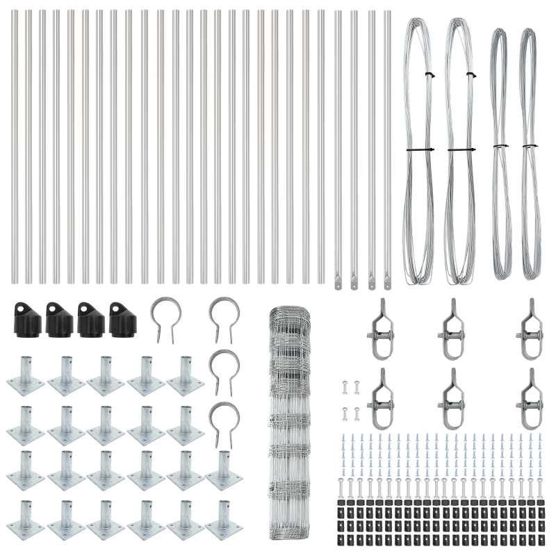 Dieser Feldzaun kombiniert robustes verzinktes Metall mit vielseitigen Einsatzmöglichkeiten, was ihn zu einer idealen Outdoor-Barriere macht. Mit seinem sanften grauen Finish und stabiler Bauweise sorgt er nicht nur für Sicherheit, sondern sieht auch gut aus. Perfekt für Gärten, Bauernhöfe und mehr. Robuste Konstruktion: Das Draht- und Beton-Design sorgt für eine langlebige, wetterfeste Barriere. Einfache Installation: Alles, was du für den Aufbau brauchst, ist dabei – Zaunpaneele, Pfosten und Betonsockel. Vielseitige Nutzung: Ideal für Sicherheitslösungen im Garten oder Bauernhof, passend für viele Outdoor-Bedürfnisse. Robustes Design: Starke Pfosten bieten Stabilität, selbst bei rauen Bedingungen. Stylisches Erscheinungsbild: Die glatte Oberfläche verleiht deinem Außenbereich einen modernen Look, ohne den Hauptzweck zu verlieren.