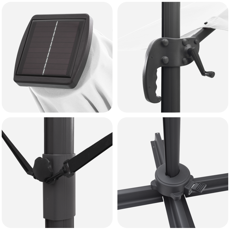 Dieser große freischwingende Sonnenschirm von ist eine stylische Lösung für Schatten im Freien und perfekt für Balkone, Terrassen oder Gärten. Er hat ein elegantes, modernes Design, das dich vor der Sonne schützt. Der Schirm verfügt über verstellbare Elemente, mit denen du Höhe und Winkel einstellen kannst, um den besten Schatten je nach Sonnenstand zu erhalten. Die stabile Bauweise hält allen Wetterbedingungen stand, sodass du dich bei Sommer-Events entspannen kannst. Hergestellt aus UV-beständigen und wasserabweisenden Materialien, schützt der Schirm dich vor schädlichem Sonnenlicht und trocknet schnell, wenn es geregnet hat. Diese praktische Funktion sorgt dafür, dass dein Außenbereich schnell wieder einsatzbereit ist. Das vielseitige Design macht den Schirm zur perfekten Wahl für jeden Außenbereich. Ob privat oder gewerblich, wie in Cafés oder Restaurants, er verbessert das Außenerlebnis für alle. Mit einem Durchmesser von 300 cm bietet der Schirm viel Schatten für mehrere Sitzplätze. Ob bei einem BBQ oder beim entspannten Genießen der Ruhe im Freien – seine Form und Größe bieten Funktionalität, ohne den Stil zu verlieren. Die matte Oberfläche des Schirms passt super zu seinem modernen Design und erzeugt einen scharfen Look, der jeden Außenbereich aufwertet. Die glatte Textur verleiht deinem Patio oder Garten einen schönen Akzent.