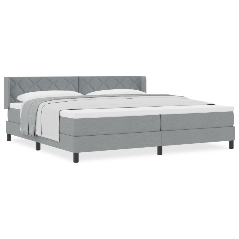 Dieses Boxspringbett kombiniert Komfort mit modernem Stil und gibt deinem Schlafzimmer einen hübschen hellgrauen Touch. Mit dem höhenverstellbaren Kopfteil kannst du deinen Komfort für erholsamen Schlaf individuell anpassen. Modernes Design: Das Diamantblock-Design fällt auf und passt gut zu vielen Styles. Höhenverstellbar: Stell das Kopfteil so ein, wie es dir gefällt. Abnehmbarer Bezug: Der Matratzenbezug hat einen waschbaren Bezug für einfache Pflege. Haltbare Materialien: Hergestellt aus hochdichtem Schaumstoff und hautfreundlichem Polyester, bietet dieses Bett sowohl Komfort als auch Langlebigkeit. Großzügige Größe: Mit 200 x 200 cm ist dieses Bett ideal für geräumige Schlafzimmer und bietet viel Platz für zwei.