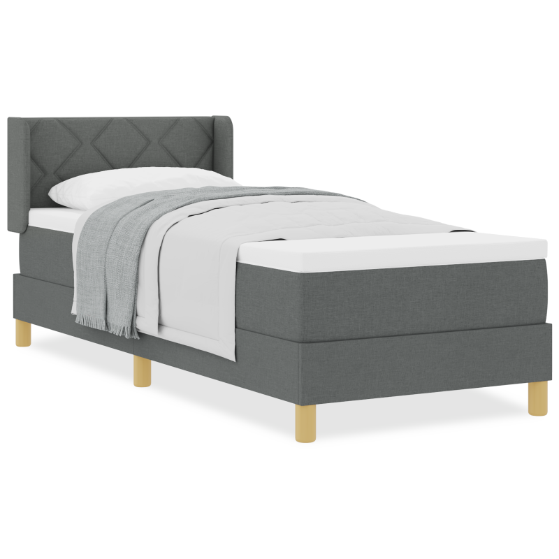 Dieses moderne Boxspringbett kommt mit einer Matratze und verleiht deinem Schlafzimmer einen trendigen Look und praktische Nutzung. Die dunkelgraue Polsterung mit Diamantblockdesign ist eine tolle Mischung aus Stil und Funktionalität, die sich gut in unterschiedliche Einrichtungsstile integriert und für einen gemütlichen Raum zum Schlafen oder Entspannen sorgt. Jede Matratze hat einen abnehmbaren und waschbaren Bezug, der für Hygiene sorgt und es einfach macht, frisch und sauber zu bleiben. Das höhenverstellbare Kopfteil kann angepasst werden, um deinen individuellen Komfort zu berücksichtigen und das Schlaferlebnis für alle Nutzer zu verbessern. Mit modernem Design bringt dieses Bett Schwung ins Schlafzimmer und sorgt für eine anspruchsvolle Atmosphäre, ohne auf Komfort zu verzichten. Die Matratze aus hochdichtem Schaumstoff bietet erstklassige Unterstützung und entlastet Druckpunkte für erholsamen Schlaf. Dieses praktische Möbelstück ist für verschiedene Nutzungsmöglichkeiten geeignet, vom Empfang von Gästen bis zum ruhigen Rückzugsort im Schlafzimmer.