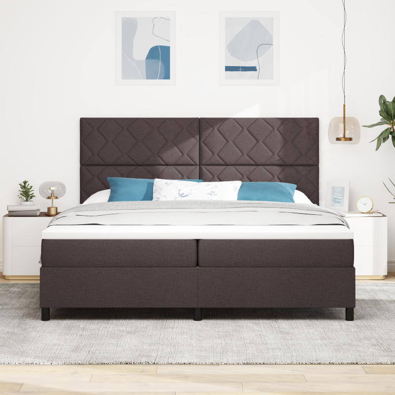 Dieses Boxspringbett kombiniert modernen Stil und Komfort und eignet sich deshalb super für jedes Schlafzimmer. Das Kopfteil und die Matratze bieten einen eleganten Platz zum Schlafen, perfekt für Erwachsene, die Wert auf Qualität und gutes Aussehen legen. Bequem gepolstertes Design: Für ultimativen Chill, bietet dieses gepolsterte Kopfteil höchsten Komfort – ideal zum Lesen oder Entspannen. Stylisches Finish: Mit seinem matten Look verleiht dieses Bettgestell eine moderne Ausstrahlung, die zu jedem Schlafzimmerstil passt. Multifunktional: Dieses Bett hat alles – ein Gestell, eine Matratze, eine Auflage und schicke LED-Lichter, sodass du alles in einem Paket hast. Robuste Konstruktion: Der stabile Holzrahmen und die sechs Beine sorgen für starken Halt und Stabilität, sodass dieses Bett dem Alltag standhält und gut aussieht.