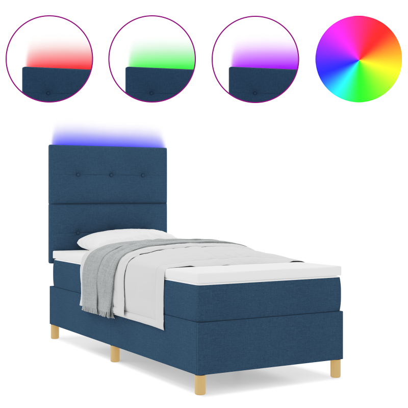 Dieses moderne, getuftete Bettgestell bringt einen frischen Stil ins Schlafzimmer und kombiniert schicke Optik mit praktischer Nutzung. Der glatte Polyesterstoff in ansprechendem Blau fügt Eleganz hinzu und bietet tollen Komfort – ideal für Erwachsene, die gut schlafen wollen. Erstklassiger Komfort: Umhüllt mit weichem Stoff, steht dieses Bettgestell ganz im Zeichen von gemütlichen Vibes und bietet hervorragenden Rückenhalt, ideal zum Entspannen oder für einen guten Schlaf. Haltbare Konstruktion: Aus robustem Naturholz hergestellt, ist es langlebig und stabil, was es zur zuverlässigen Wahl für das Herzstück deines Schlafzimmers macht. Vielseitige Ästhetik: Das matte Finish hebt den Look hervor und fügt sich nahtlos in verschiedene Einrichtungsstile ein, wodurch dein Schlafzimmer noch gemütlicher wirkt. Alles in einem Paket: Jedes Paket hat alles, was du brauchst – Gestell, Matratze, Auflage und einen coolen LED-Streifen für die Stimmung. Raum-effiziente Maße: Mit 100 x 200 cm passt es bequem in kleine Schlafzimmer, ohne auf Komfort zu verzichten und sorgt für einen gemütlichen Schlafplatz.