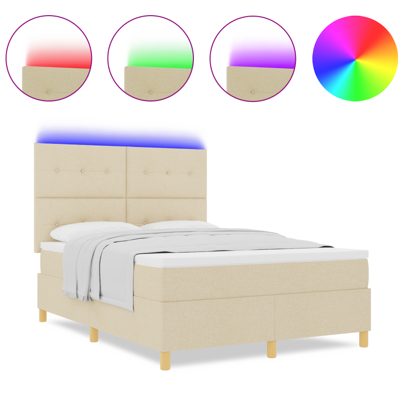 Dieses Creme Button Tufted Bettgestell Set kombiniert Stil und Komfort und bietet dir einen tollen Rückzugsort für einen erholsamen Schlaf. Der weiche Stoff fühlt sich super an und hat einen zeitlosen Look, der perfekt zu deiner Schlafzimmerdekoration passt – ideal, wenn du einen ruhigen Ort suchst. Anspruchsvoller Komfort: Das Knopfheftungsdesign sieht nicht nur super aus, sondern sorgt auch für besseren Komfort. Sein flauschiges Aussehen ist ideal zum Entspannen nach einem langen Tag. Hochwertige Materialien: Hergestellt aus massivem Kiefernholz und hochwertigem Leinen, verspricht dieses Bettgestell Langlebigkeit und bleibt dabei im traditionellen Stil. Die sanfte Cremefarbe harmoniert mit vielen Farbkonzepten. Höhenverstellbare Funktion: Der manuell einstellbare Mechanismus macht es dir einfach, es an verschiedene Matratzendicken anzupassen, was den Zugang und die Handhabung erleichtert. Einfache Pflege: Die matte Oberfläche ist leicht zu reinigen – einfach mit einem trockenen Tuch abwischen und scharfe Chemikalien vermeiden, damit es frisch bleibt. Umfassendes Set: Dieses Set enthält nicht nur das Bettgestell und das Kopfteil, sondern auch eine hochwertige Matratze und einen Topper sowie stylische LED-Streifen, die dir ein komplettes Schlafsetup in einem Paket bieten.